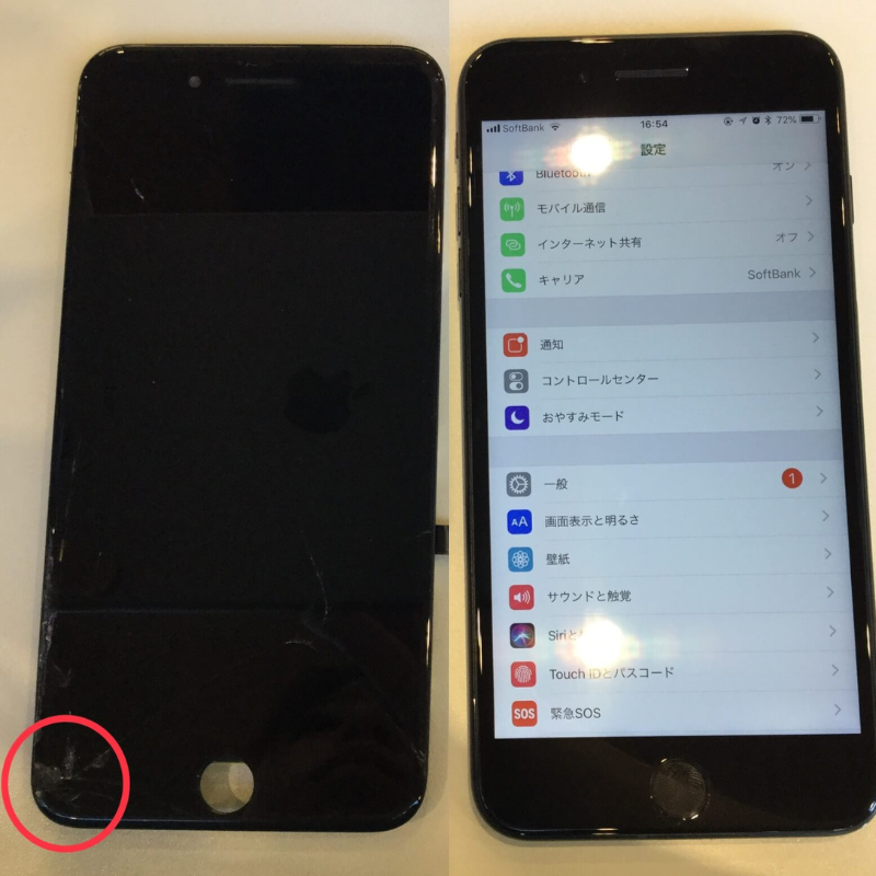 画面がうつらなくなったiPhone7、ディスプレイ交換で直りました