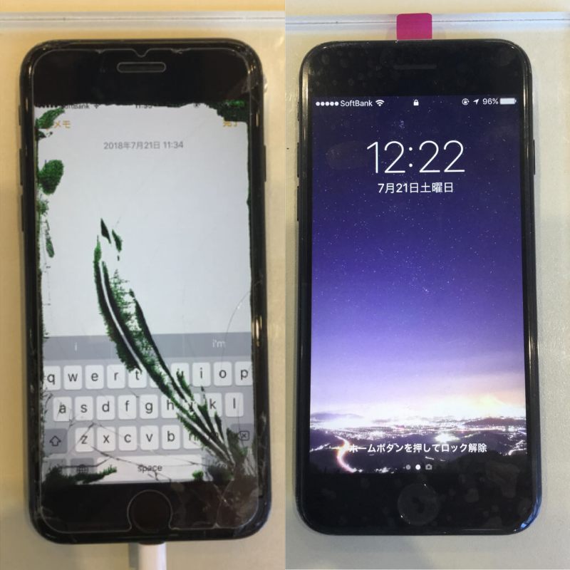 バキバキに画面が割れたiPhone 7の修理!ディスプレイ交換でキレイに直りました