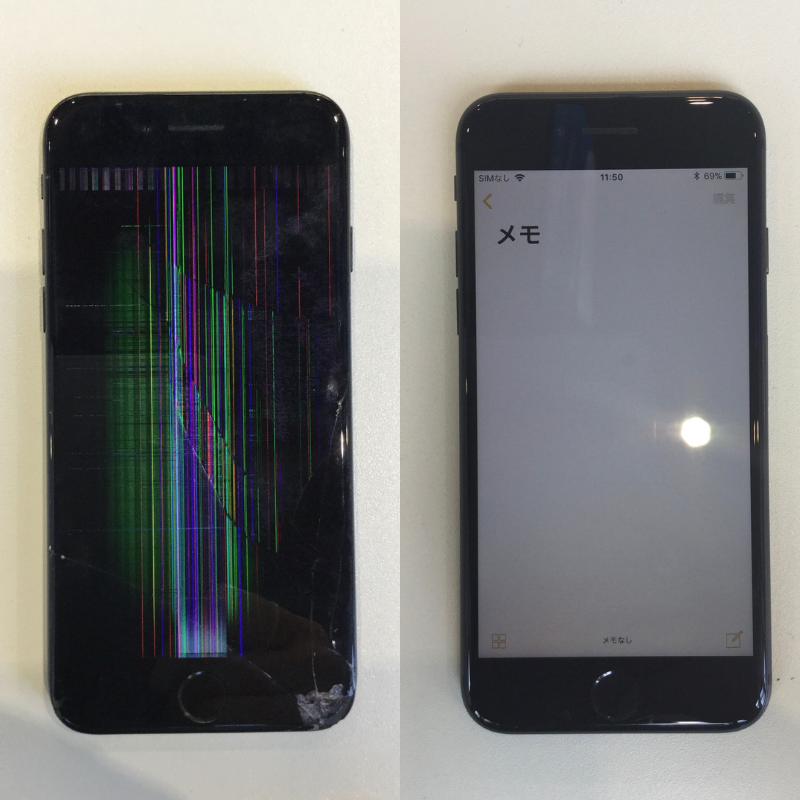 iPhone 7の画面割れと液晶不良も綺麗に直ります【修理事例】