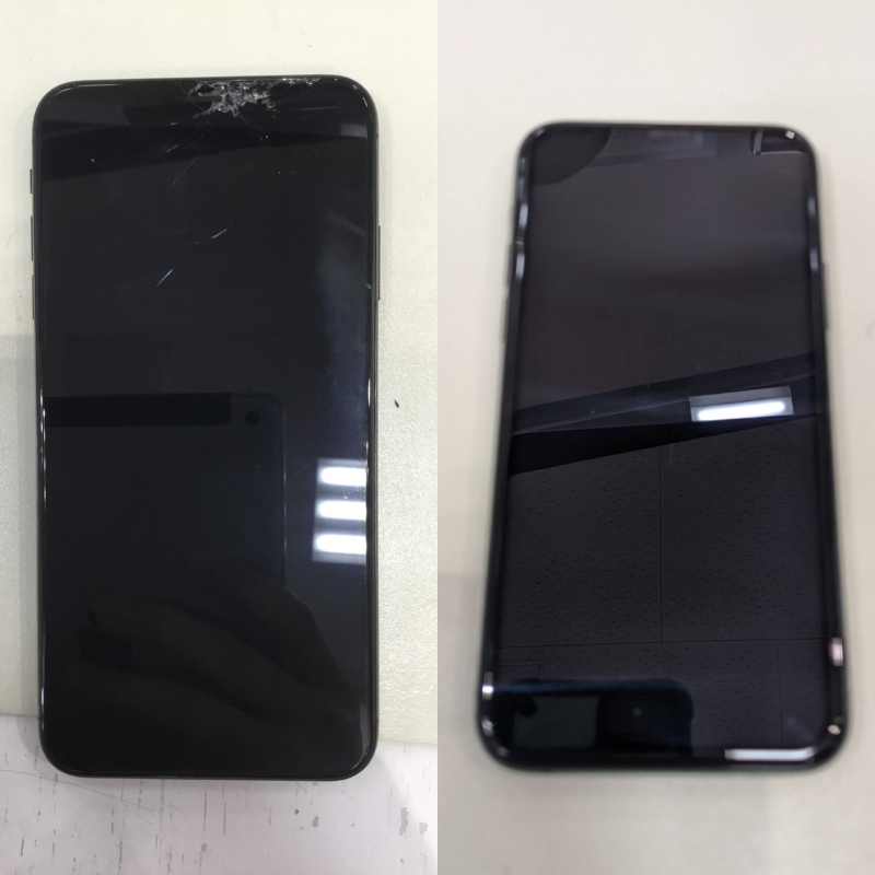 画面上部から割れが広がっているiPhone XS Maxの画面修理